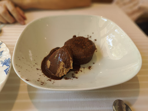Read moreMenú por 25 euros con bebida y postre muy correcto. Algunos platos están realmente deliciosos y sorprenden por su calidad. El tártar de salmón, las croquetas de ternera y foie, el meloso de ternera... mi sorpresa fue que mi segundo, albondigas con sepia, no tenía la calidad de los otros platos y me dejó muy decepcionada. Las albóndigas parecían carne de lata, la típica albóndiga precocinada que te puedes encontrar en IKEA. Probando el meloso de ternera de mi marido, que estaba absolutamente delicioso, no entiendo cómo podían servir ese plato de albóndigas tan malo. Otro fallo fue no servir todos los segundos más o menos al mismo tiempo. El meloso de ternera tardó más de 15 minutos en salir, cuando los demás ya nos habíamos acabado nuestro plato y mi marido tuvo que comérselo solo. La camarera se disculpó diciendo que había habido un malentendido. El servicio en general un poco lento. Hay momentos en los que crees que se han olvidado totalmente de ti. Pero en general fue una experiencia positiva y tal vez volvamos si estamos...