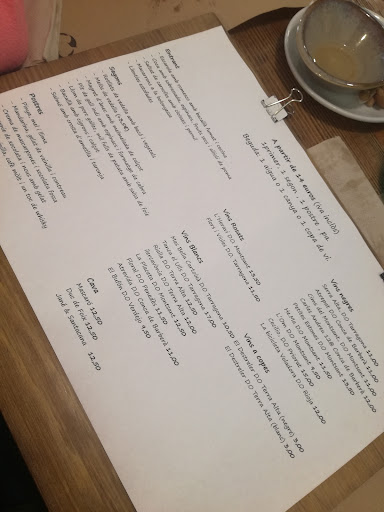 Read moreMenú bo i bastant bé de preu però amb poques opcions. De primer cap opció per als que no mengem carn i el nom dels plats poc explicatius... en demanar el saltat de carxofa sense pernil n'he seguit trobant trossets i de postre la "crema de mascarpone amb xocolata", era més aviat xocolata desfeta i gelat amb una mica de mascarpone esparcit. Temps d'espera normal entre plats i servei amable. La baixa puntuació és per la manca d'opcions. Gens apte per a...