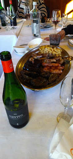 Llegando la parrillada todo muy correcto, junto a 3 platos pequeños de pan, tomates y ajos... para 9... Solo pedimos para repetir de la parrillada costillas y a poder ser algo de pan. Cual es nuestra sorpresa cuando nos traen, para 9, 3 tristes costillas y un pequeño medallón de 5cm si llega, aparte de 2 trozos de pan y restos, si, restos de "coscorrón" y medio tomate. Indignante.