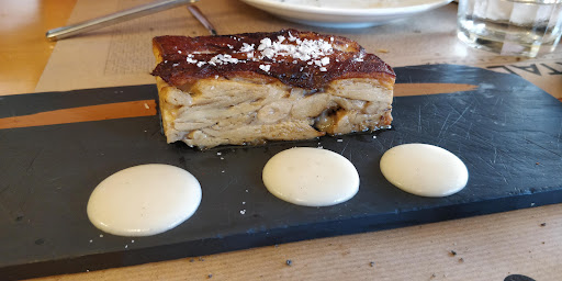 Nosotros pedimos pulpo (brutalmente bueno), ensalada de burrata, bacalao en tempura (super jugoso y de suave sabor), volcán de queso (un clásico del sitio, recomendadisimo) y para finalizar lingotazo de cerdo (SÚPER tierno y estupendo).