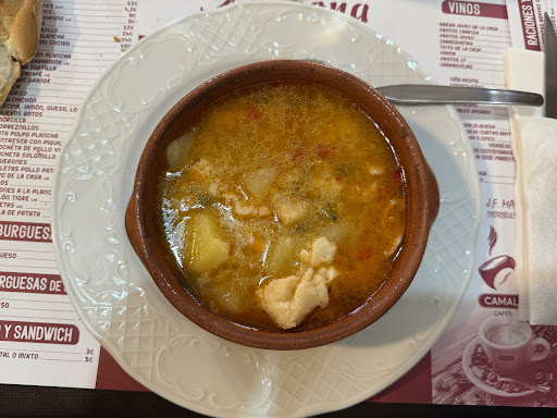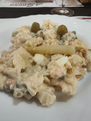 Read moreNos fuimos de fin de semana con amigos y reservamos en este restaurante. Elegimos comer de menú. Había tres primeros (patatas guisadas con bacalao, ensalada de burrata y alcachofas con jamón) y dos segundos (merluza a la plancha o rebozada con patatas fritas y salsa alioli o taco de cochinillo deshuesado con manzana asada). La verdad es que todos los platos estaban muy buenos, incluso nos permitieron repetir de los primeros. La camarera que nos atendió fue MUY amable. Los postres caseros y muy ricos también. Elegimos tarta de queso, coulan de queso y torrija con miel y helado. Un sitio que para estar en un pueblo pequeño, nos sorprendió a todos mucho. Repetiría sin pensarlo, relación...