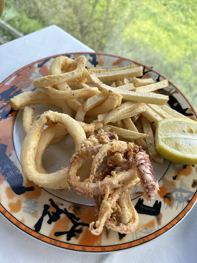 El vino abocado es una delicia, no dejen de pedirlo. No sé si lo han probado, pero mezclan el vino tinto con el dulce y queda con un cuerpo y un sabor brutal. Siempre hemos pedido carnes, porque es lo típico de la zona, pero hoy además la niña ha pedido calamares y estaban muy blandos y ricos. Las raciones son bastante grandes, todas vienen con papas fritas.