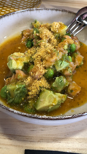 Buena situación. Fácil aparcar en las inmediaciones. Buen trato del personal. Super recomendable. El local agradable y vien decorado. Me encantaron los nachos con el queso fundido calentito y el guacamole casero. También el arroz con pollo picante. Los cócteles están deliciosos. Pedimos de maracuyá (el de Pura pasión) y el de piña colada (super cremoso). El postre de chocolate con helado...