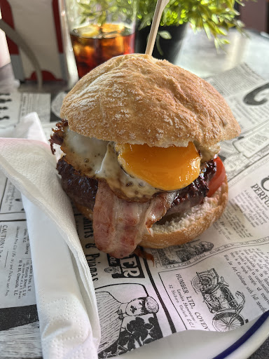 Read moreAyer fuimos por primera vez para hacer un pedido para llevar. Pues una muy grata sorpresa con todo lo que encontramos. Una amabilidad bastante reseñable (que es a tener en cuenta en estas épocas) un local limpio y agradable (a mí parecer, una decoración muy acertada). Pues bien, si bien es cierto que hay locales relativamente cerca donde ponen amburguesas más grandes, no tienen nada que ver en sabor. Están buenas, si, pero las de aquí es algo fuera de lo normal. ¿Y a quien se le ocurre hacer una hamburguesa con piña? Pues a estos genios. Estaba buenísima la mezcla. Y con un tamaño más que suficiente, aunque te podrías comer una tonelada. Pedimos también unas patatas y al final nos sobraron porque estábamos llenos. A pasado de ser un bar desconocido a ser nuestra primera opción. Con ganas de ir a probar el café, que es de...