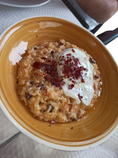Toda la comida está muy buena, pero recomiendo el risotto serrano y la tarta de queso (además de otras muchas cosas).