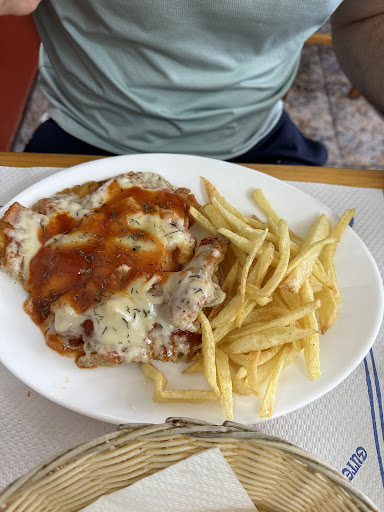 Read morePara empezar, fuimos porque el Restaurante Goyo de al lado tenía cerrada la cocina (de 17 a 19). Llegamos y fuimos al comedor, el cual estaba vacío y nos sentamos en la unica mesa que no estaba aparentemente sucia, ya que todas las demás estaban con platos de clientes anteriores o llenos de migas. Curioso, ya que la camarera estaba de risas y fiestas en la barra con la clientela. La comida, sin más. Lo “mejor” de todo, es que te cobran servicio de pan y mojo a 1eur por persona. SOLO nos pusieron 1 pan, y éramos dos personas. Al salir, casi me resbalo con comida que habia en el suelo de otras mesas… Un detallito: en el baño de chicas, el agua del lavamanos no iba. Conclusión: ni volveremos ni lo...