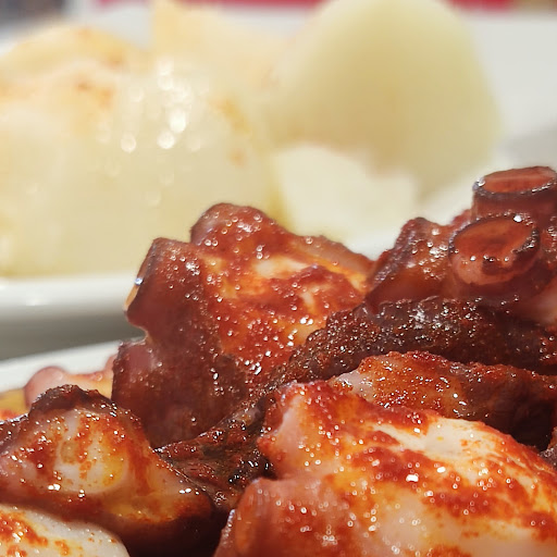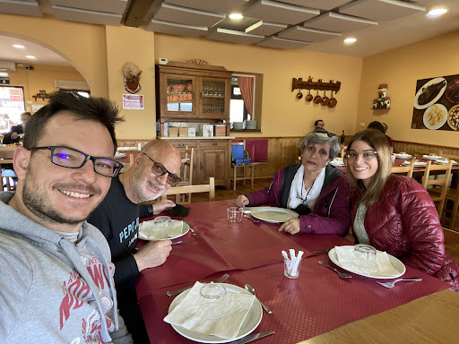 Read moreNo es barato pero el pulpo y el churrasco espectacular, los postres caseros muy ricos, lo único la camarera, éramos 15 comiendo y no paraba de gritar a mi lado y todo con muchas prisas, todo era como si hubiese un incendio, con prisas y a gritos, encima no se la entendía la mitad de las veces, cierto que la mesa era larga pero esos gritos a mi espalda completamente desprevenido me hicieron dar mas de un bote, me lo tome a cachondeo pero aquello no era normal, estaban todos descojonados, cada vez que la veían acercarse ya me avisaban, porque mira que éramos gente y siempre se ponía detrás de mi, al final alguno ke salió a fumar se quedo sin café y sin postre, no se puede agobiar a la gente con esas prisas, o das mas tiempo a cada turno o coge menos reservas, un montón de peña entre la puerta y las mesas esperando el siguiente pase, intentas salir a fumar y no te dejan salir, quieres volver a entran y no se apartan Quizá entre semana sea otra historia pero el fin de semana resulta agobiante, estresante y la guinda la camarera...