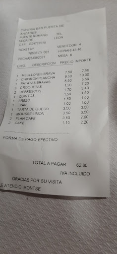Read moreFuimos a comer durante el festival Espina fest y tuvimos una mala experiencia por los siguientes motivos: En ningún momento se nos avisa de que la comida va a tardar mucho. Estuvimos más de una hora esperando. Hubo mesas que comieron antes que nosotros a pesar de que llegaron después. La comida salió aceitosa, la carne dura y los huevos demasiado hechos. El servicio y la atención dejaron mucho que desear. Trajeron un plato diferente al que yo había pedido. Se equivocaron en la cuenta añadiendo un producto que no pedí (esto puede ocurrir en cualquier sitio pero es que ya era demasiado) Se notaba un estrés en la barra y en la cocina que no era normal ni agradable para el comensal. Esto trasmitía poca profesionalidad. No...
