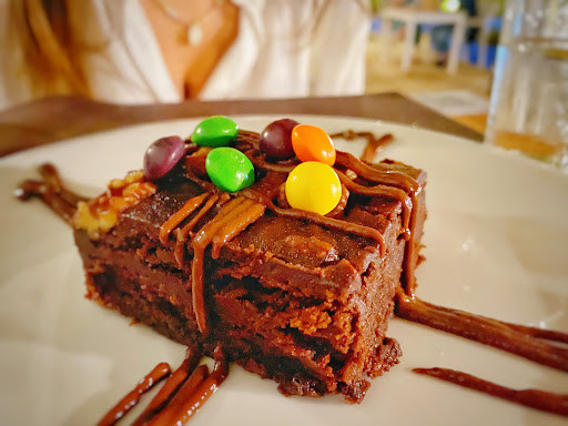 Croquetas variadas: caseras y muy ricas, las de jamón estaban para chuparse los dedos. Canelón de Rabo de Toro: sin duda nos maravilló, además no es uno si no tres deliciosos canelones rellenos de un jugoso rabo de toro exquisito. Si les gusta el rabo de toro, pídanlo que se van a relamer durante un buen rato. Carpaccio de Secreto Ibérico: quizá fue porque al pedir un carpaccio esperábamos carne mucho más fina, pero no nos terminó de convencer. Aún así la calidad de la materia prima se notaba que era de primera. Brownie de chocolate: casero y con el sabor que se espera de un auténtico brownie. Solo para los más chocolateros (como yo).