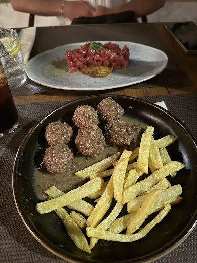 Location is excellent. A big garden with impressive decorations. and a good feel to it as you walk in. Nice place to relax but stressful service and more expensive than what we had expected. We paid 125 euros for the four of us, which included, 3 starters, 4 beers, and 4 main dishes .