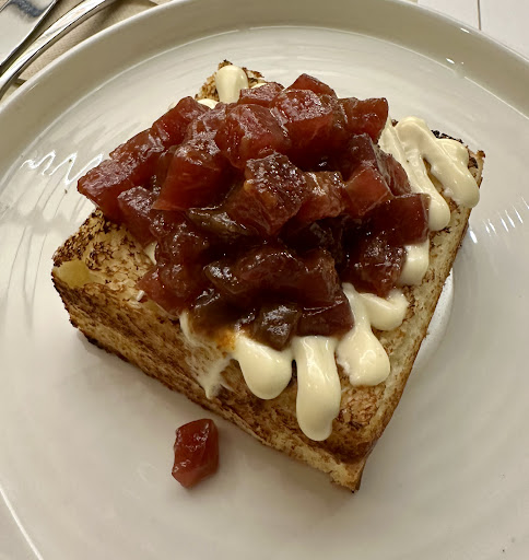 Decepción TOTAL . Acudimos aquí por recomendación de un camarero de otro restaurante al que queríamos ir principalmente pero estaba completo y viendo las reseñas nos medio convenció. Al llegar pedimos un par de bebidas las cuales nos sirvieron bastante rápido ,después de esto empezó la tortura. Estuvimos esperando minimo 30 minutos para los primeros platos los cuales fueron todos fríos, increíble que un plato frío ya hecho tarden tanto en traerlo cuando no estaba completo ni un 50% de la terraza. Pedimos un gazpacho en dos texturas( agarrate los machos ) el cual era un gazpacho normal y corriente con 4 tropezones, a eso lo llaman texturas? Cuanto daño ha hecho Masterchef.. por cierto el cual estaba más simple que simple. Se lo comentamos al camarero y nos dijo que no sabía que eran las dos texturas y que a el personalmente no le gustaba.. empezamos bien. Luego nos llegó una tosta con anchoa de Santoña la cual había que mirarla con lupa, tamaño irrisorio pero por lo menos de sabor no estuvo mal . Seguimos con una ensaladilla de " atún" de 6.50 la cual nos ofrecen hacer un " upgrade" añadiéndole encima tartar de atún que era otro plato el cual añadiendo el tartar sumaba 18€ aproximadamente.seguimos esperando esperando y esperando y nos traen la ensaladilla " rusa" con piparras y aceitunas negras de las cuales no había rastro más que un ligero polvo negro de aceituna deshidratada, y encima de esta menos de 20 gramos de atún picado en dados del supuesto tartar , el cual como dije anteriormente fuera de Carta ofrecían... El resultado un plato totalmente absurdo pues el atún perdía la gracia y el sabor predominando más el sabor de la pizarra y la propia ensaladilla. Un despropósito. El colmo de los colmos fue cuando nos llegó la pastela de pollo la cual de pastela no tiene más que el nombre. Han intentado hacer un invento con una especie de masa filo finísima la cual para nada se asemeja ni de lejos a una pastela real . Para nosotros fue una decepcion total por no hablar del elevado precio de sus platos para la calidad y cantidad ofrecida. Por cierto, justo el día anterior comimos en un local que estaba al lado de estilo arabe y ese si que nos encantó y nos ofreció una pastela de pollo lo más fiel a lo real posible ( y lo digo con sabiduría pues he estado en marruecos más de tres veces ) , no volvería a repetir...