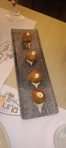 Read moreEste restaurante se convirtió en mi lugar favorito en Vejer para comer, gastronomía inigualable. Probamos varios platos de la carta como la ensaladilla, las croquetas de jamón ibérico, croquetas de camarones, tartar de atún, gambones al ajillo y manzanilla, pastela de pollo y almendras, carrillera con espuma de patatas y chip de boniato , la hamburguesa crujiente de pollo y sus tres variedades de postres ( torrija, tarta cremosa de queso con pistacho y tarta de chocolate en 3 texturas) y sinceramente no sé decir cual de ellos me gustó más, ni tampoco el resto de comensales. Todo un acierto comer en este lugar ya que todo está exquisito. Si tuviera que recomendar algo seria volver hasta probar la carta entera. Trato de 10, añadir que tuvimos que apuntarnos en lista de espera pero una vez sentados el servicio es super rápido ( si van y no hay sitio no duden en apuntarse en lista, no se arrepienten seguro)Solo podemos dar la enhorabuena a este gran equipo que forma HAkUNA TAPAS, tanto al personal de cocina que es el gran motor como al servicio de sala, personal cualificado. Lugar que te deja con ganas de volver y seguir probando su placentera carta. Volveremos muy pronto,...