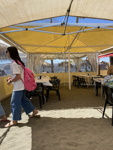 Read moreNos encontramos con este chiringuito de casualidad mientras paseábamos. Es un chiringuito de playa donde la relación calidad precio no está del todo mal, no porque sea caro, sino porque la calidad no es que sea muy buena en general. Si que tienen la facilidad de pedir medias raciones, y eso hicimos, pedimos varias cosas para probar, entre ellas: mar y tierra (venían dos gambas sólo y un pelín aceitosa), tomate picado con melva, boquerones abiertos, sardinas al espeto, calamar pequeño frito en anillas (porque lo que ponen en carta como anillas de calamar, no es calamar,es jibia/ pota) y berenjenas fritas (estaban ricas). En los postres (caseros) nos llevaron una representación de cada uno de ellos en una bandeja, al ver que eran italianos y tenían tiramisú, no lo dudé, y me decepcionó un poco, vi una elaboración muy sencilla en vaso ancho, con bastante licor y en vez de mascarpone, parecía nata. También se pidió tarta de tres chocolates, ésta si estaba mejor. El servicio no fue malo, atendían bien y bastante rápido, tanto que se nos acumularon los platos en la...