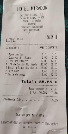 Read moreEs la tercera visita al restaurante, las dos primeras hace un año, y muy satisfactorias, pero ésta última, hoy ha sido muy diferente, es evidente que ha cambiado el equipo, servicio lento, el personal de sala atendía las mesas sin orden, cada plato era servido por uno diferente, en un establecimiento que se designe como asador, si pides patatas fritas en lugar de panaderas como acompañamiento, no debería sorprender a la maitre , que condicionó la petición a "veremos que se puede hacer", producto del desórden el servicio era lento, pides una copa de cerveza y te sirven una lata vertida en vaso, sólo tienen una variedad de cerveza, cuando pides alternativas te sirven una botella caliente, hasta que después de insistir, aparece una botella fría. Por otra parte,la carta ha desmejorado visiblemente, aunque los platos solicitados estaban correctos, la carta de postres muy lejana respecto a la anterior (peor), trato desigual, nos faltó el detalle que si tuvieron con otros comensales de ofrecer una copa de licor al final del servicio, en fin, se nos han quitado las ganas de volver, un establecimiento que cobre de media 45€ por persona y que ofrezca tanta mediocridad, no es nada...
