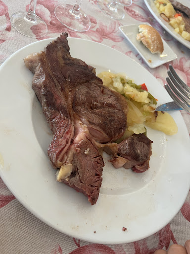 Tras traernos la carne, estar hablando y degustando con la familia, se acerca dicha señora recriminandonos que por nuestra culpa habíamos dejado a una mesa esperando sin poder comer porque habíamos pedido 4 entrecot y no solomillos y se fue a cocina cabreada.....no nos dio tiempo ni a responder, nuestra cara de sorpresa y de no entender, ya que cada uno sabia lo que habiamos pedido, esto nos dejó en vergüenza y en ridiculo delante de el resto de comensales haciendo sentir incómodos durante el resto de la celebración, iba a llamarla la atención por su incómoda actitud pero creo que por educación (la que le falto a esta señora) no quisimos decir nada y dejar que la pequeña disfrutará de su día, que era lo que más nos importaba.