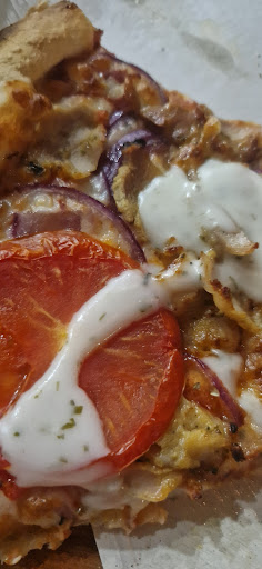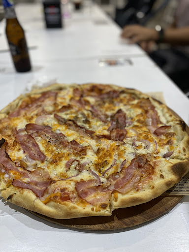 La pizza bastante básica en sabor e ingredientes y la masa un poco chiclosa.