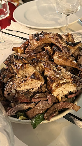 Read moreUn menú a 10 euros con primerp y segundo, pan, bebida y postre a elegir. Estaría bien si, por ejemplo, el churrasco no fueran dos pedacitos de costilla y un trozo de chorizo con patatas fritas y una salda fuertísima, el entrecot bastante duro, no por el asado sino que la carne no era tierna. En cuanto al postre: tarta de hojaldre con nuces, nata...o tarta queso, bien... Lo que llaman "churrasco" en cuanto a lo servido no tiene nada que ver con el que he comido en sitios de Coruña, Lugo, Pontevedra...claro que si te pueden decir: "y qué esperaba Ud. en un menú de diez euros? Hombre, pues una carne más tierna y menos seca. Claro que viendo otras reseñas será que ese día tivimos...
