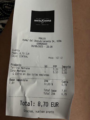 Read moreLos helados están muy buenos, pero las trabajadoras están demasiado estresadas. Imagino que será un negocio de temporada. Fuimos la primera vez y al ir a pagar no pudimos pagar con tarjeta y nos mandaron a sacar dinero a las 00:00 de la noche y con un bebé y el cajero no estaba al lado precisamente. Hasta ahí bueno. La segunda vez nos tuvimos que levantar porque el negocio estaba abierto pero los helados no podían servirse aún porque hay que esperar que se atemperen, nunca me habían dicho nada así en una heladería, pero bueno, vale, nos levantamos y nos fuimos. La tercera vez después de estar haciendo cola y presenciar la discusión entre tres de las dependientas, al darme el helado, cojo una cucharita de helado que hay en unas cajas del mostrador, y la chica me echa en cara haberla cogido por motivos de higiene con pocas formas. - Escucha, las cucharitas las cogemos nosotras. En fin, creo que hay demasiado estrés para lo que debería ser una heladería que es un punto de encuentro de niños y mayores. Los helados están muy Buenos, los sirven rápido y bien. No se puede pagar...