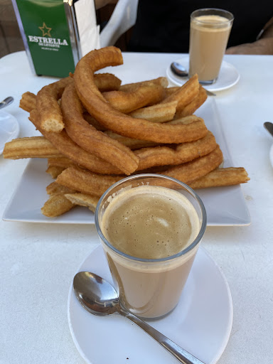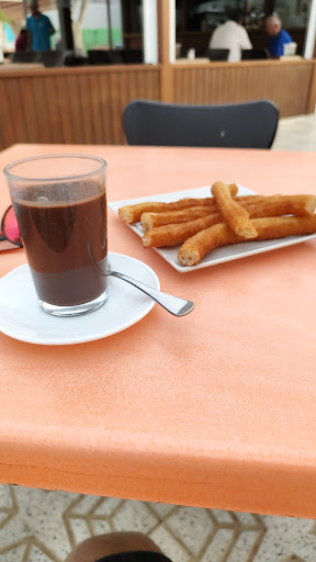 Está realmente bien esta churreria. Muy agradables en el trato. Tiene las mesas y sillas de la terraza en una especie de semiporche, no está ni en medio del asfalto ni de la acera. Bastantes sitios, y con unos ventiladores, que no se si con sol harán mucho (hoy estaba nublado), pero a mi me han ayudado a no tragarme el humo del asqueroso tabaco. Un zumo de naranja natural, 1 ración y media de churros (bueno, 1 ración son 5 y pedí 7...jeje, pero no me iban a poner 7,5 churros). De precio 5.50 euros. Los churros son semi porras, y estan ricos, pero creo que deben mejorar la masa, son demasiado pastosos, y parecen un poco donuts (por eso no le doy 5 estrellas). Pero ojo!! estan ricos de sabor. Y lo mejor, el chocolate...ESPECTACULAR!! Esta delicioso, pero rico rico rico, y además en vaso de los se café, vamos, que terminas los churros y te queda medio vaso para degustarlo, que jope, hasta he repelao con la cuchara. Lo recomiendo muchísimo....