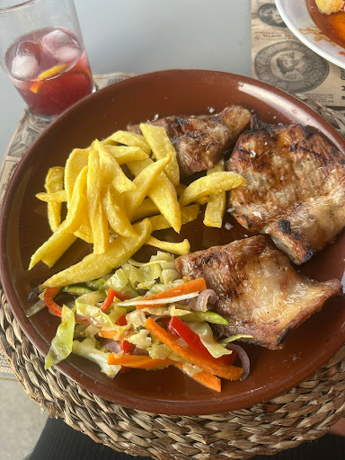 One of the best main courses I have ever tried. I visited with my daughter, while her partner went to an Indian restaurant with their three kids. We started with gambas al pil pil, six succulent king prawns brought sizzling in oil, flavoured with chilli and garlic and a small hot bread roll for €11. My daughter had Secreto Ibérico for main, delicious cuts of pork with immense flavour added to by the barbecue cooking. It was served with chips and salad for €16. I chose Pulpo, probably a nine to ten inch grilled octopus tentacle, at least an inch thick at the cut end tapering to a point at the other. It was served with potatoes with I think a paprika oil. The octopus, whilst expensive at €26 was the best I have ever tasted. Again I think it was barbecue flavoured and it was as succulent as the prawns. It was cold though at the thick end, I don't know if that was because I asked for it to be cooked medium or not but I didn't mind it, some may not like it. Four tinto de verano's came in at €12, giving a total bill of €65. We ate al fresco, along with all the other patrons,not all were eating. No one was inside the air conditioned restaurant. All patrons appeared to be local with the exception of my daughter, myself and, I believe, one other english lady who seemed fluent in Spanish. Inside the restaurant was a transparent refrigerator with large cuts of beef on the bone. They offer a few steaks and one where the customer can choose the weight they want. I would thoroughly recommend this restaurant to anyone and we would...