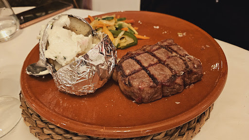 I booked a table but still ended up under the trees to get bitten to death. Drinks and menus came quickly, the only things that did. Order taken after 35 minutes, by which point other people who had arrived long after us also got their orders taken. During that time, every other table had been given attention in some form, except us. Anyway, order arrives. Son had ordered a special, ribeye, which arrived as a huge bone with some meat attached. I’d looked at the menu and saw that the entrecôte was priced at €20,50. As ribeye & entrecôte are very similar (just more fat with entrecôte but same location), I stupidly thought they’d be a similar price. Nope - €55 a kilo, with my son’s 700g lump of bone coming in at €38.50. For my own part, I ordered solomillo & jacket potato but got some sliced up fatty meat with chips instead, which was definitely not solomillo. We also ordered sauces - pepper & Roquefort, neither of which materialised. My husband’s salmon was tiny but acceptable. An extremely poor, overpriced, long and dismal experience that we will never...