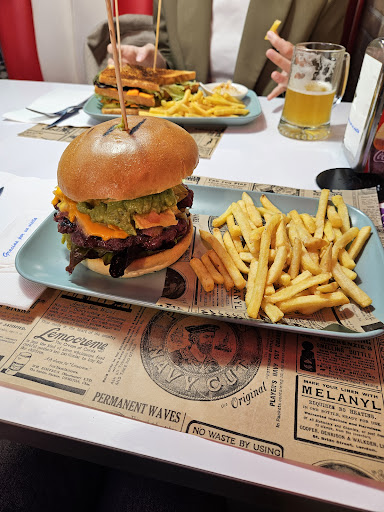 Read moreEs un restaurante ambientado con la época de los ochenta. Con un estilo de los 60's. La decoración es en sí la ambientación ochentas, ya que tiene en las paredes posters de las películas icónicas de aquella década, Michael Jackson, back to the future,star wars, et, Ghostbusters,etc. Al entrar te encuentras con delorean estrellado en la pared tamaño real, un mini r2d2 como saliendo de la pared y montón de figuras de colección adornando el lugar, cómo así también réplicas de discos de platino y oro de m.jackson. la música también de los 80's. Con respecto a la comida, ordenamos una hamburguesa con queso, que sinceramente es de las mejores hamburguesas caseras que he probado, no es un plato gourmet claro,pero no es como esos sitios que se han puesto de moda de hamburguesas caseras que al final son solo carne picada y pagas una fortuna por una hamburguesa sin sabor, está se encuentra perfectamente condimentada y con...
