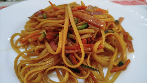 Bar-restaurant de tota la vida amb la típica barra llarga a un costat del local i les taules enganxades a la paret. L'interior del bar no ha canviat en anys i anys i això es nota. Potser li caldria una reforma en aquest sentit, modernitzar-lo una mica. Serveixen un menú diari migdia que consta de 3-4 primers i 3-4 segons, a més del postre. Sorprèn la proposta culinària que combina plats de cuina asiàtica (actualment els propietaris tenen aquest origen cultural) i plats tradicionals catalans, de cuina més de xup-xup. De primer vam escollir l'arròs tres delícies, fet al moment i casolà. Igual que les tallarines. Tots dos plats gustosos i ben elaborats. Ara bé, cal una menció especial als segons: peus de porc amb cigrons o bé el garró de porc. Tots dos plats amb carn molt tendra, que tenia hores de cocció, gustosos ben elaborats, amb molt de xup-xup. Plats que valen un menú per ells mateixos i del tot recomanables si t'agraden els plats de cullera, de sucar-hi pa. De postre, gairebé sempre tenen el mateix: fruita del temps o bé préssec amb almívar; flam amb nata o iogurt natural. Un menú molt competitiu. El servei és correcte, amb interacció justa...