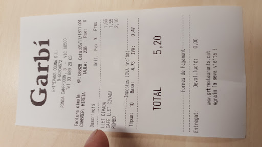 Read moreEntramos en la cafetería Garbí atraídos por el pequeño espacio de juegos que hay para niños pequeños y la experiencia fue positiva en general. El espacio era correcto, limpio y había muchas mesas disponibles. En el espacio de niños, solo hay 3/4 mesas, con lo cual se llena rápido, quizás un espacio más amplio en este sentido sería mejor. Valoro com muy positivo la cantidad de leches vegetales que tienen (avena, soja, arroz…). El trato por parte del chico joven de barra fue correcto, amable, pero le costaba recordar y preparar los cafés, nada que no se mejore con la experiencia que se gana con el tiempo. Recomendable en general, aunque...