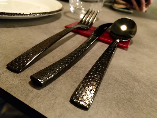 Quant al menjar, que és per mi el més interessant. Vàrem agafar el menú degustació llarg. Consta de nou elaboracions més dues postres. Per mi és un menú que va de menys a més. Francament divertit, elaborat i acurat. Amb això vull dir també que els plats (vaixella) acompanya la cuina d'autor. Perquè és d'autor i s'agraeix. Més particularment, el primer de carbassa, és una clàssica elaboració que diferents llocs la fan de diferents gustos. Espectacular la vedella. Curiosa la combinació d'aletes de pollastre amb vieira. El postre de cítric molt bo. Per posar un però i del tot personal, massa salsetes i espumes.