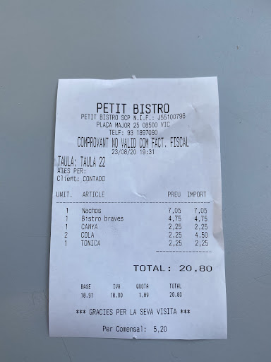 EN RESPUESTA A LA RESPUESTA DE PETIT BISTRO: -La reseña de hace 3 años¿que pasa? Es la experiencia que vivimos en su local,fue esa y así la escribí . El motivo de poner la reseña ahora es que google no la publico en su momento y ahora la he vuelto a publicar. -¿Que ustedes no tienen microondas en el local? Entonces, dígame como se calentaron los nachos qué pedimos, si hasta el papel que venía debajo de los machos venía caliente. -¿Que no tienen (o tenían en su día) un papel enganchado en cada mesa diciendo que todas las personas que se sentarán tenían que consumir? Venga va… Solo hace falta leer algunos comentarios de su local para hacerse una idea. Tendría que tomarse los comentarios negativos de forma que le hiciera mejorar, no responder como lo haría un niño pequeño.
