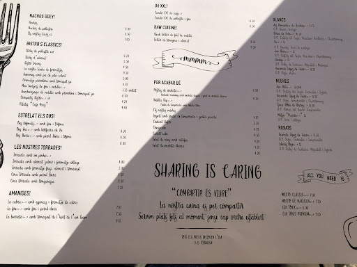 Read moreDijous nit de la primera setmana de calor, era previsible que el restaurant estaria plè. Els plats i les copes brutes s'acumulaven en les taules que s'havien anat buidant. Ens varem apropar per l'estret passadís fins a la barra per demanar taula. La cambrera va passar unes 5vegades, i en cada ocasió la saludava amablament amb un "hola!" a l'espera d'una resposta per poder demanar per una taula. No va ser així. Minuts més tard el cambrer que estava cobrant va acabar aquesta feina, i es va dirigir a nosaltres. en demanar-li per una taula va bufar, mentre que a la cuina la cambrera que no responia feia un gest de tirar un cop de puny a l'aire. La resposta, seieu a qualsevol taula lliure i us la preparem. Les taules lliures estaven plenes de plats i copes brutes que s'havien recollit d'altres taules, però això s'enten perquè tenien molta feina. La cambrera es va apropar i sense ni saludar va retirar tot i es va disposar a posar-nos els individuals, sense netejar la taula. Van caldre dues peticions meves perquè ens la netegés, nota important: ho va fer amb tantes ganes que les engrunes de sobre la taula van acabar sobre meu. Demanem el beure i el sopar: Dues copes de vi blanc, unes carxofes, unes braves, una amanida d'espinacs i formatge de cabra, i una amanida de quinoa. Minuts més tard ens porta el vi, la meva copa quedava enganzada a l'individual, el peu estava brutíssim! però no només el peu de la copa, la copa també, hi havien restes de menjar enganxat per fora, i traces per dintre. En un inici vaig pensar que era suro, però no ho era. Vaig aixecar-me a demanar un canvi, i les altres cambreres no van ser especialment amables tampoc, la seva mirada de "ya està aquí la pija" sobraven bastant, perquè jo era qui estava amablament demanant de solucionar un problema seu. El menjar, no està malament, la poma caramalitzada de l'amanida semblava compota, i hi havia un clar excedent d'oli que estic pagant avui (dia després), però correcte. El preu, 36€ per totes dues, tenint en compte que també varem fer postres i cafè, no és car. Ara bé, no em tornaran a veure el pèl, per mal servei. Tot el que ens va passar (copa bruta, taula bruta, excés d'oli,...) TOT es podia entendre. El que no puc entendre és el mal servei, és no saludar, és la no amabilitat. I és una autèntica llàstima perquè el lloc és bo, al bell mig de la plaça, però crec que no estan preparats. Espero de tot cor que ho...