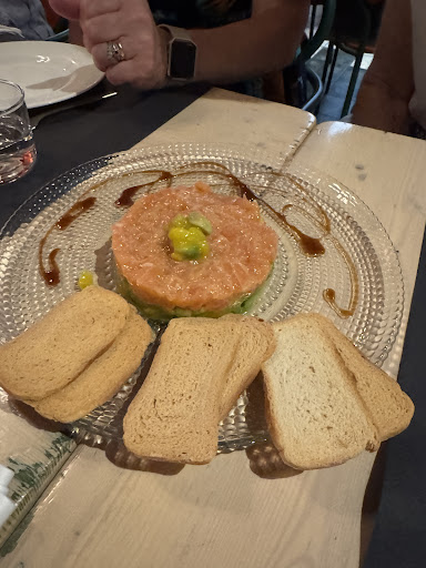 Read moreUn buen restaurante, ambiente acogedor y servicio rápido. Primeros platos: ensalada de atún con mozzarella fresca, tomates cherry pelados, olivas y zanahorias muy rica y fresca; fideos negros con sepia y alioli, un poco secos con muy poca alioli, trozos de sepa muy pequeños y calentador en microondas. Segundos platos: calamares a la romana con una mayonesa muy rica y ligera y el rebozado muy ligero también. Los calamares mismos parecían frescos; la butifarra nada del otro mundo, el pecho de pollo con salsa de roquefort muy sabroso y cocinado con cuidado y cariño :-). Los postres: hemos probado los cuatro del menú y nos han gustado todos, flan de mató con crema de chocolate, helado de queso, pastel de chocolate con nata y el flan de coco. Quien sigue mis reseñas sabe que voy acompañado con una persona mayor con movilidad limitada y este restaurante tiene un único acceso con muchas escaleras y muy empinadas. Por el resto el restaurante en si se defiende y los camareros...