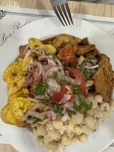 Very good dishes (you need to like rice and bananas (taste like potatoes) as the main part of the dish . The service was nice . Very south American ambiance :) ... South American Music is a bit loud but part of the experience..