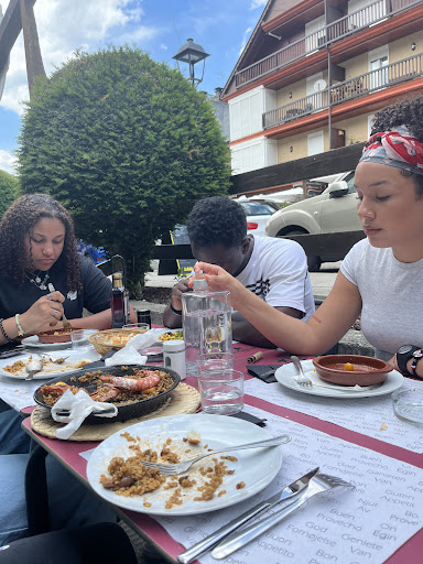 Restaurante bien ubicado. Hemos venido a comer un grupo de 5 personas. Pedimos comer en terraza y no tuvieron ningún problema, aún así, siendo la mesa relativamente más grande nos ubicaron en la zona más estrecha de la terraza. El servicio, pésimo. Pedimos menú , que estaba bastante bien, y aunque primero nos negaron pedir dos segundos en un solo menú ya que queríamos compartir una paella de primero, siendo segundo, pero finalmente dijeron que si con suplemento. Entendible. La camarera nos hizo repetir varias veces qué queríamos, y después de esto estuvimos esperando más de media hora por la comida, aun no habiendo mucha gente. Los primeros tenían mucho que desear. Los segundos , los pedimos muy hechos, y aún así, tuvimos que pedir que los hicieran más. Por no mencionar que también tardaron más de media hora en traerlos y en retirar los platos del primero. Cuando terminamos y tocó pedir postre, tuvimos la esperanza de que al menos fueran presentables pero no, el arroz con leche parecía un batido y la tarta de queso muy simple y pequeña. Pedimos café, esperando poder marchar satisfechos, y también muy mal hechos, por lo que ni siquiera los tomamos. Pedimos lo básico y ni a eso llegaron por lo tanto no recomendamos este...
