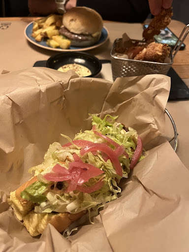 DEFINITELY NOT RECOMMENDED FOR VEGETARIANS! We went here because we saw their menu on Google with the street food and compared to many other places that cone crate on meat, really like those options. When we got there, we had to realize that apparently their menu shrunk a lot and all the veggie options were basically gone. So we had to go for the veggie burger as the only available option and oh boy, this was by far the worst burger I had in my life. There was no burger patty, it was just some mush of unknown vegetables that tasted like nothing. The fries were okay but a bit salty. They also don't serve ketchup and didn't offer any other sauce that's not spicy, which made it also super dry to eat. Those of us who did have meat had split opinions, one really liked his brioche burger, the others didn't like theirs either as most options were quite dry with lots of bread. We didn't really understand where the high ratings are coming from.. It's a pity because I'm sure the street food they used to have would have been good. It's kind of a Hipster place where they claim everything is local but then serve things that definitely aren't and they seem to make their deserts extra weird for the experience. So if you're into that, go for it, but for those who just want good food, it's a bit of a risk coming here. The server was nice though and I liked the...