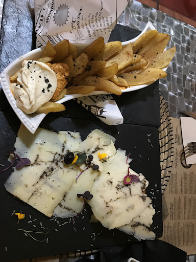 Nosotros optamos por lo tradicional y pedimos un chuleton q vino muy bien acompañado de verduras y patatas . No soy carnívora y a mi no me gustó mucho pero a mi familia si y en cantidad y presentación le doy un 9 .