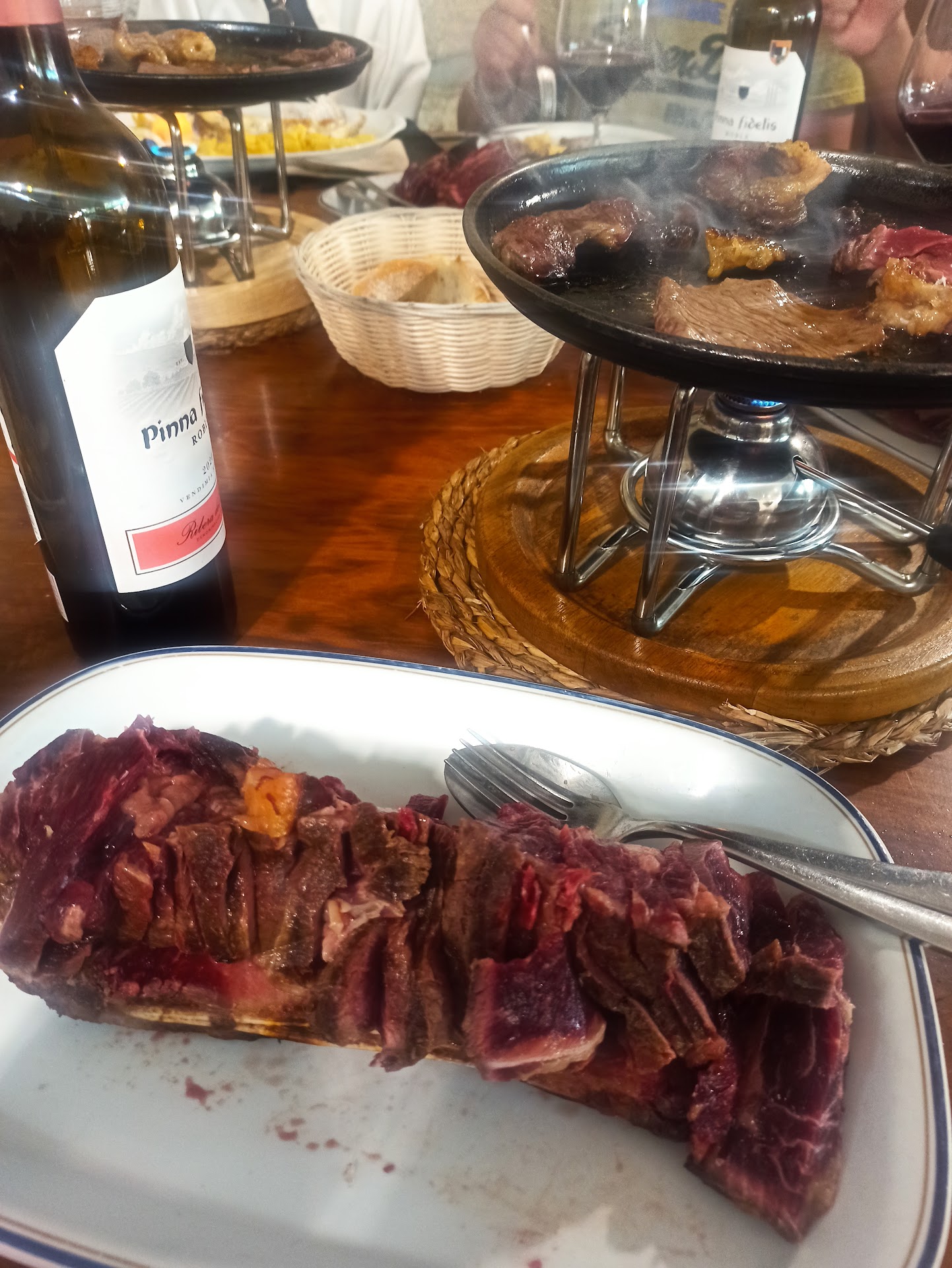 Bueno....el recinto está bien. Posibilidad de aparcar dentro si llegas temprano. La mayoría de las mesas están en el exterior, ideal mientras no llegue el invierno. La atención de los camareros pichi picha, nada más sentarnos venían a preguntar si ya sabíamos que queríamos. Les contestamos en tres ocasiones que nos dejaran mirar la carta( hay que decir que la carta no ocupa ni un folio incluyendo bebidas). Pedimos jamón ibérico( riquisimo, la pena que pongan tan poco por 15 euros el plato) pimientos de padrón y chuletón para 3(éramos 4). El chuletón te lo filetean delante tuyo...y te ponen una plancha para terminar de hacerlo al gusto. Personalmente no me gustó la plancha ya que más que hacerlo te cuece la carne. La carne nada de especial, solo el precio ( 68 euros la pieza y nos quedamos con hambre). En fin, de esos sitios que pruebas y no vuelves después del sablazo que te pegan. Precios excesivos para la calidad y la cantidad que te sirven. Sin ánimo de ofender preferiría ir a algún lugar tipo A roda y no me dolería pagar ese pastizal sabiendo que voy a comer a reventar. En fin otro lugar que...