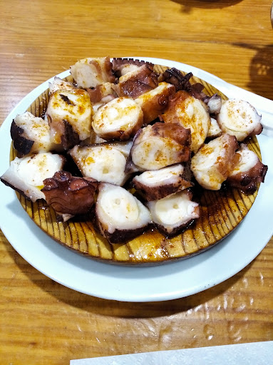 Read moreHemos parado a tomar algo en plan aperitivo, bueno, he de decir que sólo yo, mi marido es más de cafés 😬, lo digo para que se entienda lo siguiente, he visto en una carta que tenían en la pared que había pulpo, la ración 13€, lo que quería comer y he preguntado si servían tapas pues era la única que iba a comer, bien, cuando me la han servido era lo que se ve en la foto y le he dicho ¿Esto es una tapa? 😳 Sí, aquí le llamamos tapa o ración. Yo lo que quería era un pintxo, cómo le llamamos en Pamplona, mi tierra. En fin, ha sido una anécdota porque al final, cómo no me lo he podido terminar, le he pedido un envase para llevar y listo.el pulpo estaba espectacular, calentito y todo. La ración, por ese precio, de lujo. He de decir que media ración cobran 11€, no merece la pena por la diferencia. No está en el centro pero casi, hay que ir a los bares y restaurantes de la periferia, los que no se anuncian,los que te van a dar muy bien de comer y no te van a robar. Ah! También he visto que tenían una tortilla de patatas..., qué tenía una pinta 😋😋😋 y había pensado en pedir una tapa 😜pero con tanto pulpo 🐙... Muy...