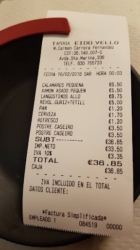 Read moreTapería clásica en la zona, llevan ya unos cuantos años funcionando y suele estar lleno porque su relación precio/calidad es bastante buena. Puedes cenar de plato o tapear, hay bastante variedad en el menú y también suelen tener algún extra fuera de carta. La carta de vinos no es muy extensa pero correcta. Las raciones son bastante generosas, no te irás con hambre. El local tiene una decoración estilo «enxebre» en su interior lo cual le otorga cierto encanto, por fuera es una casa normal y corriente. El personal es atento y amable aunque he de decir que nos tocó una mesa al lado de la puerta y como hacía bastante frío y todo el rato estaba entrando y saliendo gente que iba a fumar y vimos otra mesa vacía al fondo del local pedimos si nos la podrían cambiar (antes de comenzar el servicio) pero parece ser que era «imposible» ahí perdieron para mí las cinco estrellas... En resumen, una Tapería correcta en la que es preferible...
