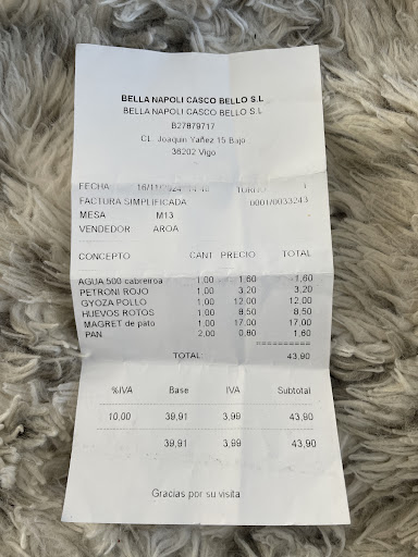 Read moreEl lugar es muy bonito, bastante acogedor con varias estancias, decir que teniendo bastantes mesas libres en todas las zonas nos ubicaron al lado de una nevera que hacía ruido y era molesto a la hora de comer, el trato con los trabajadores fue bueno pero la atención recibida respecto a necesitar ciertas cosas como pan etc, tuvimos que levantarnos para encontrarles, la comida … normal, precio excesivo para la cantidad servida, a la vez que la comida se recibía templada tirando a fría, reseñar que pedimos entre otras cosas unas gyozas de pollo y no encontramos el pollo por ningún lado, lo comentamos porque pensamos que se habían confundido con las gyozas vegetales y nos dijeron que no que no había confusión alguna ( solo había vegetales en ellas), reseñar también que pedimos petroni rojo y no sabía a nada, las demás cosas que pedimos … escasa y fría; Añadir que solicitamos pan y nos lo trajeron con el último plato (entiendo que se cobre, pero si lo pedimos en un primer momento y nos lo traen con el último plato después de solicitarlo dos veces…. Mínimo el detalle de no cobrarle 0,80 por trozo). Suelo ir a Vigo seis veces al año y tengo claro que NO repetiré en este...
