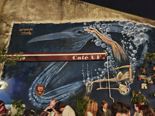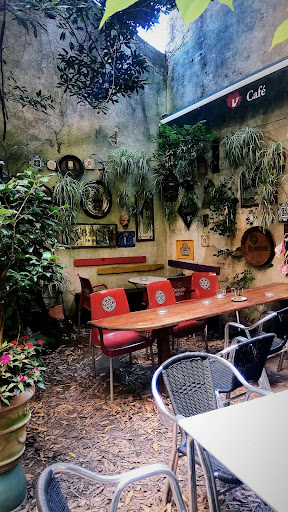 Espacio único, acogedor y muy agradable, con muy buena selección del hilo musical. Además programan actividades culturales en directo en un sótano con terraza casi tan especial como la parte de arriba. Tienen juegos de mesa. Gran variedad de cafés, tés e infusiones, además de cervezas, vinos y la licorería propia de un bar (hasta donde yo conozco). Para mí es el refugio ideal en Vigo. Eso sí, a veces conviene refugiarse también de los camareros: