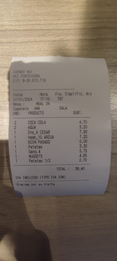 Cuando salimos a comer en familia solemos ir al Corner Hut, al de Samil o al de CC Gran Vía. Nos gusta porque tienen muy buena relación calidad / precio y sirven rápido.