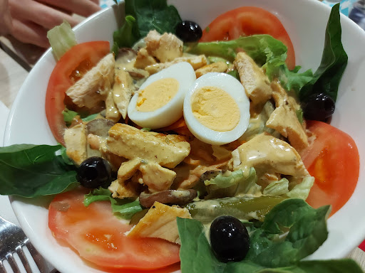 Read moreNo recomiendo mucho el servicio. Ayer llegamos a las 10.20pm a cenar, el local cierra a las 11pm y ya a esa hora nos negaron poder cenar con café pues según la persona que nos atendió la cafetera estaba ya limpia. FLIPAMOS, mi chica no bebió nada pues ella quería café. Aun así cenamos...los platos eran 60% arroz, Ensalada de col 3%(una muestra) de proteína (en mi caso pollo con champiñones) 15% con solo 2 champiñones y un porron de salsa y un huevo frito seco. El plato de mi chica, un poco mejor que el mío que era lamentable, aunque también era full arroz.