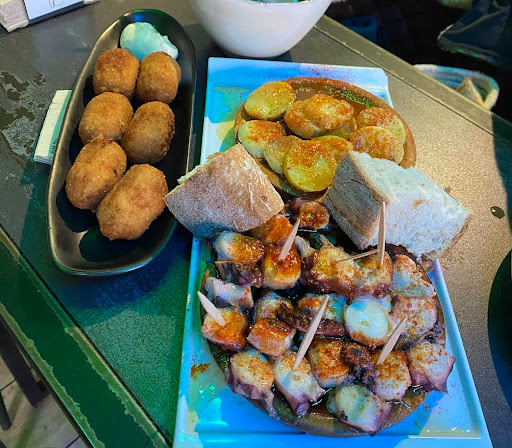 Read moreNice food and decent prices for the location. Design of the building means tables inside are a bit cramped and waiters have to rush through a narrow part of the layout, but otherwise all good. Waiters do seem a bit hurried, too, but were all generally fine to deal with. Our pimientos de Padrón didn't have any salt on them when they came out (first time I've ever had that in Galicia) but they sent some out when asked. We also had tapas of octopus, lobster croquetas, and clams,...