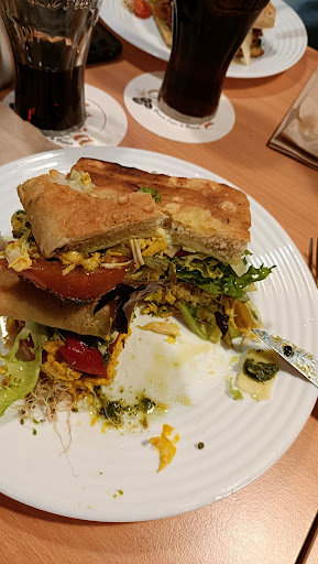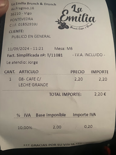 Read moreLlegamos y había dos mesas ocupadas y una tercera sin recoger, el local no es muy grande y las mesas están bastante juntas,por lo q nos sentamos en la más cercana a la puerta ,pedimos una carta y después de un rato vino la persona q está en cocina a tomarnos nota ,tardaron poco en servirnos ,la focaccia estaba aceitosa y no destacaba ningún sabor en concreto( era de mortadela italiana, pimiento morrón,rúcula ,pesto , queso parmesano,la mozzarela si la traía no la vi y aceite de oliva)tuve q limpiar el pan en la servilleta constantemente para poder comerla, pedimos también unos pancakes que no decían nada ,el helado de vainilla que los acompañaba sabía como si tuviese tiempo,y un gofre de mermelada de la casa con una galleta Lotus y el mismo helado desabrido de vainilla. Los precios en comparativa con otros brunch de Vigo me parecieron caros. Quiero recalcar también que el local da aspecto de pasotismo,después de casi una hora allí la mesa q cuando llegamos estaba sin recoger continuaba igual ,la persona de cocina salió a llevar un plato a una mesa y medio recogió y las demás mesas q fueron quedando vacías también seguían sin recoger mientras la persona de barra no hacía nada más q beberse un café. Cuando le fui a pagar observó el billete varias veces con...