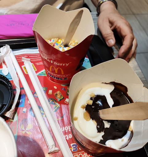 Read moreHoy dia 12 de diciembre fui a comer a este Mcdonal's por lastima y desgracia, llegue al restaurante a las 00:20 realice el pedido en el kisko a las 00:25 tenia el pedido listo y estaba esperando en la caja para que me cobraran, entro un chico 3 minutos mas tarde y me miro 3 veces he de decir que en las cajas no habia nadie para pagar a las 00:45 me cobran, le pregunto al chico que se llama Diego (el encargado de turno intuyo) si no habia para rellenar yo la bebida me dice que no es la primera vez que en un Mcdonal's no te puedes servir tu la bebida, vale hasta ahi lo deje pasar, cogi mi cena y me puse a cenar tranquilamente, antes de irme me pedi dos Mcflurry lo cual la compañera de este chico (una chica alta rubia, de gafas) coge 2 helados medios echos del congelador de patatas delante de mi cara y tiene el descaro de rellenarlos lo cual obviamente le dijo que NO los queria ya que eso se LLAMA CONTAMINACION CRUZADA ya que el congelador a la taylor ( que es la maquina de helados) nunca van a tener la misma temperatura, la respuesta de Diego es los hizo hace un rato y lo hizo inconscientemente y ya que no hay mucho helado y mi contestacion ya fue pedirle una hoja de reclamaciones porque sino teneis helado NO lo vendais o pregunta antes al cliente y el cliente tomara la decision si lo quiere o no. Si siguen asi en breves les caera una inspeccion de sanidad porque es lamentable la manera en la que hacen las cosas. Ojala sus gerentes tomen medidas en este estableciemiento lo...