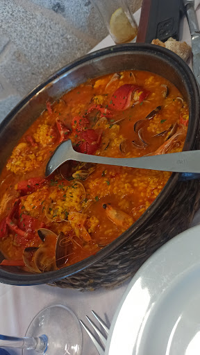Read moreFuimos a comer. Pedimos de primero un par de vieiras. No me gustaron nada, muy aceitosas y la cebolla crujía de cruda. De segundo pedimos un arroz con bogavante. El arroz demasiado crudo aunque venía con caldo y caldo. Le faltaban al menos 5 minutos más. Demasiado pimentón al menos para nosotros, debería tener un sabor más agradable a marisco y no saber a pimentón, puesto que va cargadito de almejas, lleva el bogavante y los langostinos. El pan 2 trozos contados literal. Luego tardaron mucho en venir y nos fuimos sin tomar nada más. Con la cantidad de camareros que había realmente esperaba una atención más rápida. El más majo el señor que se había lastimado la mano y que tomaba comandas. Dos colas, un agua de medio litro más...