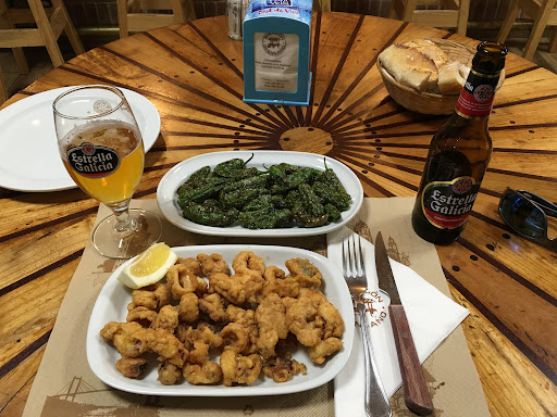 Lo mejor ha sido el servicio. Tremendamente rápidos en servir y muy agil y atenta la camarera. De 10!! Ella es lo positivo. Lo negativo es que yendo un domingo, los precios son bastantes caros. No hay menu del día. Me imagino que harán como todos de que por la semana lo tienen pero el fin de semana pues desaparece el menu del día. Los precios desorbitados. Un filete con patatas 10 Euros, tal cual, sin bebida, ni postre ni nada más. Es decir, si te tomas un filete con patatas, con postre y con bebida, estás en 17 Euros mínimo, y sin haber pedido primer plato, ni ensaladas ni nada. Con un primer plato estas tranquilamente en 22 Euros. Muy caro para un filete con una ensaladita o unos calamares. Por cierto los postres flipo, que los ponen a 4 Euros. Es decir un miserable Flan 4 Euros!!! En serio!!! Que será lo siguiente una manzana o una pera por 5 Euros? Vamos, por favor!!! El precio de los demás postres pues creo que todos a 4 Euros, tipo tarta de la abuela o tarta helada, vamos lo habitual, tampoco vi ningún postre que no viera en cualquier otro restaurante. La zorza esta buena y la dan gratis una ración al sentarte. Los calamares estaban ricos aunque también 9 Euros una ración normal tirando a pequeña le llega. La chuleta creo que son 12 Euros. Las bebidas pues una botella de agua de 2 litros estamos hablando de 2,5 Euros o de un refresco normal pues 1,5 Euros. El precio de las bebidas pienso que es medio normal. Y luego ya para reventar es que cobran el pan. Cobran el pan!!! Eso solo lo había vivido en mis carnes en Portugal. 1 Euro me pone por 2 raciones de pan. Ésto me dejó tocado y hundido. Vale que cobramos el pan, nadie te dice que no. Pero pienso que tienes y debes avisar a los comensales primeramente antes de ponerlo en la mesa, porque sino todo el mundo piensa que no lo cobran. Lo dicho solo me pasó en Portugal y en un local medio cutre pegado al rio y me harté de discutir con el camarero para nada. Eso de ponerte algo en la mesa sin pedirlo y luego cobrártelo así "by the face and by the way" debe ser costumbre de Vigo para abajo. En fin, ... Vamos ir ahora al tema de la calidad de la comida: el churrasco mixto son 8 Euros. Una ensalada completa son 6 Euros. El churrasco viene con patatas y el sabor no parece fresco es como si lo recalentaran, y eso lo parece porque lo sirven rapidísimo, nunca vi cosa igual pero luego al morder tienen sabor de recalentado y de no ser fresco el sabor. Lo mismo me pasó con las patatas fritas, sensación de no ser recién hechas. Del Churrasco, mucha grasa, pienso que demasiada. Sobre todo en la parte de ternera era casi todo blanco, y mira que yo no le hago ascos a la grasa, pero tampoco es en plan de entupir arterias así a lo bruto. De hecho los cachos casi todos de ternera tenían grasa para dar y tomar, como para hacer un par de pastillas de jabón "Magno". En la parte de cerdo también había grasa pero no tanta como la parte de ternera. La salsa que traen para el churrasco, venía en una botellita de cristal, con un corchito, que la verdad es que muy estética, y me animé, pero lo que hubo algún día ahí dentro ya se transformó en otra cosa. Eso tiraba a vino que metía miedo. Debió fermentar o mutar en algo diferente. Tenía un olor y sabor a vino que no podía con ello. Mira que soy fan de toda la vida de las míticas salas chimichurris y todo lo que se le pueda echar al churrasco. Por animar hasta me animo con el ketchup, pero esto fue demasiado. Ni un Chardonnay del `83 tiene tanto cuerpo y aroma como aquella inocente botellita de salsa para el churrasco. A mi casi me tumba con el olor y hasta me entró la duda de si puedo coger el coche después de haber echado una buena cantidad en el churrasco. Las raciones del postre pequeñitas. La tarta de la abuela era un cuadradito, de esos cuando Jesus tuve que multiplicar peces, pues ésto igual, supongo que habrá que dejar para los demás, y me pareció poca cantidad para ser un postre de 4 Euros. Lo dicho tampoco no he probado más cosas aquí, así que solo puedo valorar las cosas que probé y los...