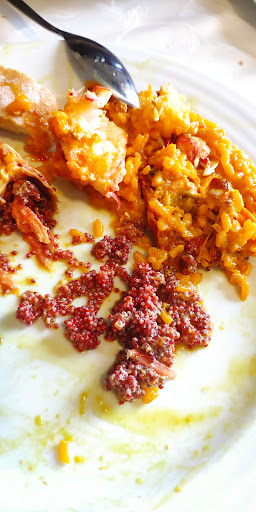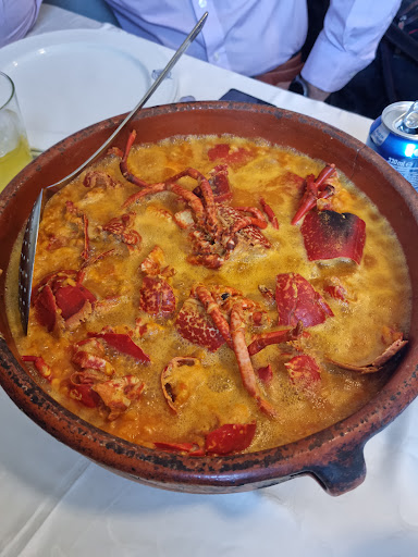 Al lio... De primero unas navajas de buen tamaño y muy carnosas y ricas (tal vez para mi gusto le faltaba un poquito más de sal) Y de segundo...buah!!! De segundo unos bogavantes con arroz (sí, habéis oído bien, no arroz con bogavante) porque creo que llegué a contar 3 colas de bogavante y éramos 3 a comer (creo que tocaba a 1 por cabeza apox). Qué "jarta" y qué rico el bicho con mucha hueva en la cola (a quién le guste, claro) y el arroz espectacular, en su punto, sin pasarse ni un pelo y con un sutil toque a picante. La presentación fue en tartera de barro de toda la vida, en mesa, todavía hirviendo pero dejamos reposar unos 5 minutos (ya nos había avisado el camarero) yyyy...voilà!! El arroz absorvió perfectamente ese caldo sobrante y listo para hincarle el diente. En difinitiva, uno de los mejores arroces con bogavante que he probado (es el plato estrella). El precio, pues acorde a la buena calidad del producto. En mi caso para darse un caprichito de santas en pascuas, jeje.