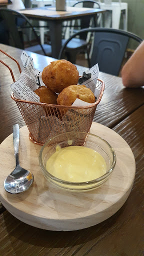 Read moreEncantado con el sitio! Es la tercera vez que voy y puedo decir con seguridad que es la mejor hamburguesería de Vigo. Comida: Nada que decir, las bravas de boniato las recomiendo para 2 personas como un ligero aperitivo mientras eliges tu hamburguesa. He probado la mayoría de las hamburguesas y sinceramente todas son maravillosas, ahí cada uno con sus ingredientes favoritos. Para los indecisos, la de rabo de ternera es mi favorita. Los postres son muy buenos también, los sirven en tarrinas no muy grandes pero se puede compartir si hay confianza. Se agradece muchísimo que todas las hamburguesas (y casi todos los platos) tengan opción sin gluten, las probé esta última vez y estaban buenísimas. Tiene muchas alternativas para alérgenos, dice mucho del restaurante y de la calidad, cuidado y limpieza en la cocina. Servicio y ambiente: un lugar muy acogedor, recomendable llamar para reservar y decir preferencia si mesa alta o baja (la ultima vez me pusieron en mesa alta para comer y no me encantó). Le daría un lavado de cara a los baños para que encajasen un poco mas con la estética del local pero por lo demás ninguna pega. El sitio está un poco alejado del centro pero merece la pena darse el paseo de subida (y luego bajar rodando... ). Por último, el servicio es muy bueno pero la segunda vez que estuve pedí una botella de vino para dos y quería pedir un vaso de agua pero tuve que pedir la botella pequeña que tienen. Jamás pediría un vaso de agua o varios para toda una comida pero nunca me ha gustado esa iniciativa de las botellas y menos cuando ya he pedido una botella de vino. Es la única pega que le veo y es solucionable pero sin duda que volveré, el sitio es fantástico y merece...